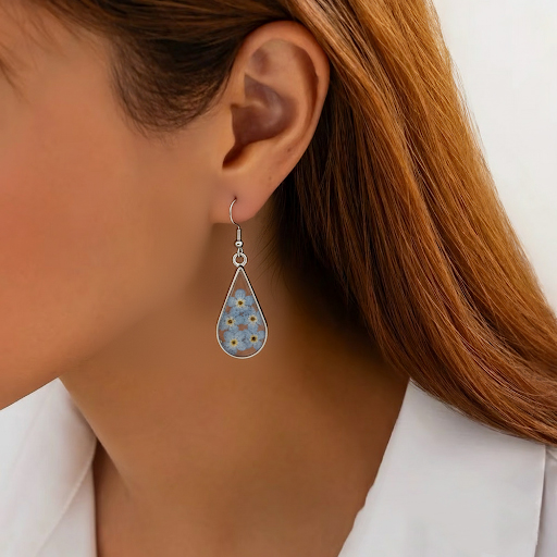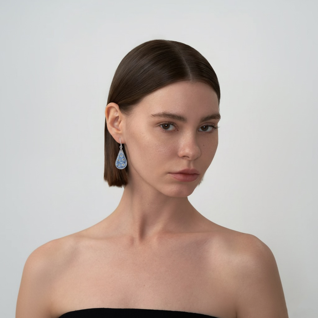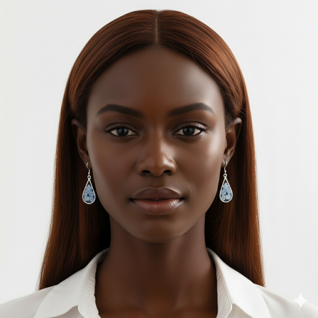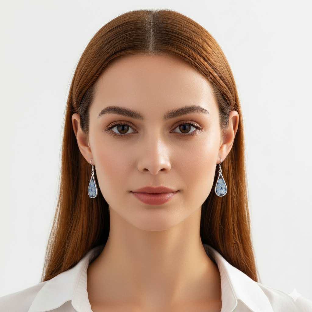 Modern and elegant blue teardrop earrings with silver hooks, perfect for everyday wear or special occasions.
